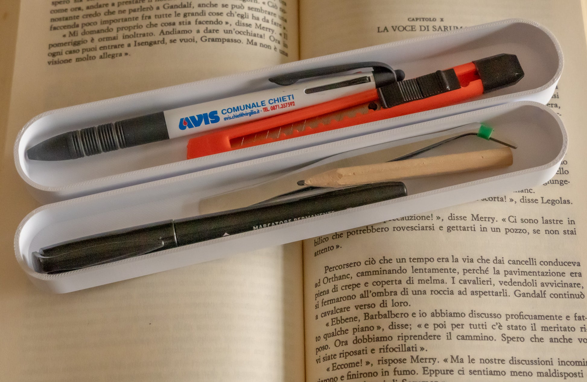 - Materiale: PLA (bioplastica biodegradabile da amido di mais) stampato in 3D. Segnalibri e cancelleria non inclusi con la custodia... ma la custodia è inclusa con i segnalibri!