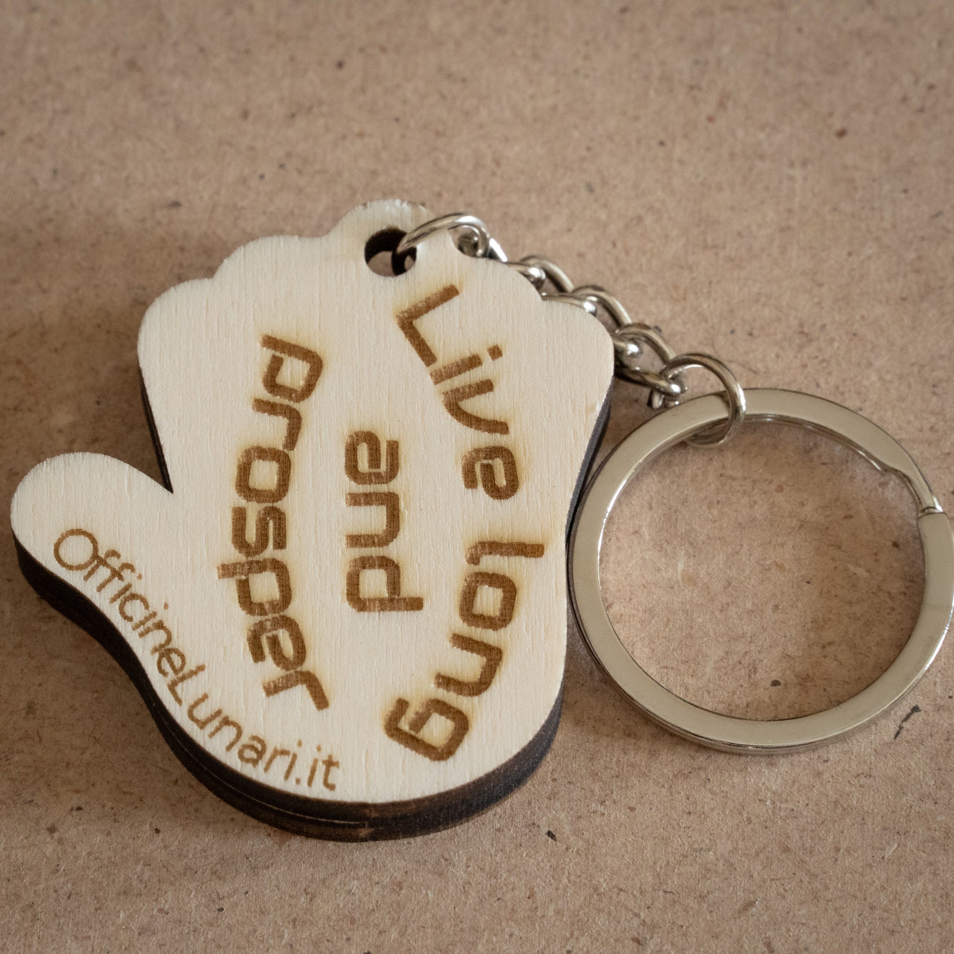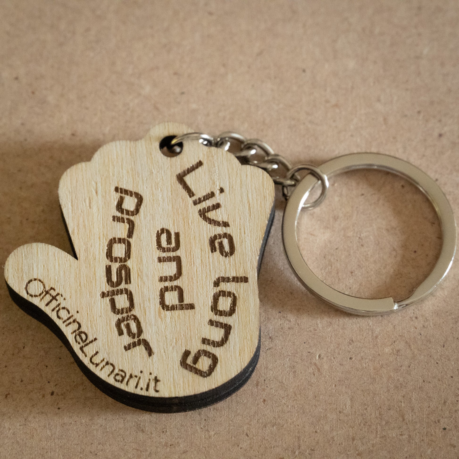 Realizzato con un doppio strato di compensato di pioppo, questo portachiavi unisce la leggerezza del legno alla resistenza di uno spessore da 8 mm. L’incisione laser esalta i dettagli del disegno, rendendo ogni pezzo unico grazie alle venature naturali del legno.