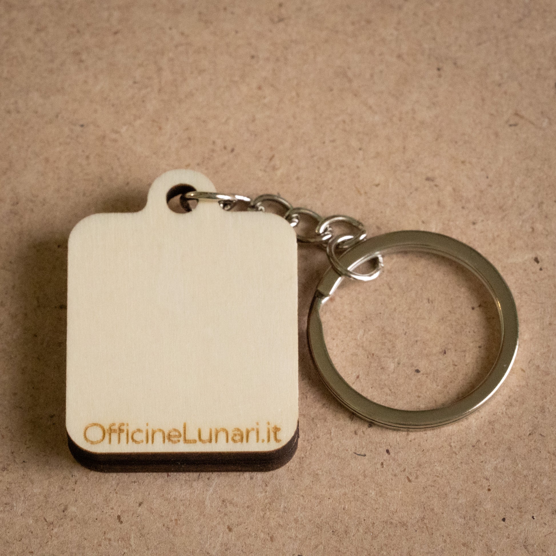 Realizzato con un doppio strato di compensato di pioppo, questo portachiavi unisce la leggerezza del legno alla resistenza di uno spessore da 8 mm. L’incisione laser esalta i dettagli del disegno, rendendo ogni pezzo unico grazie alle venature naturali del legno. Ogni pezzo riceve due mani di protettivo su entrambi i lati, per resistere meglio all'utilizzo quotidiano.