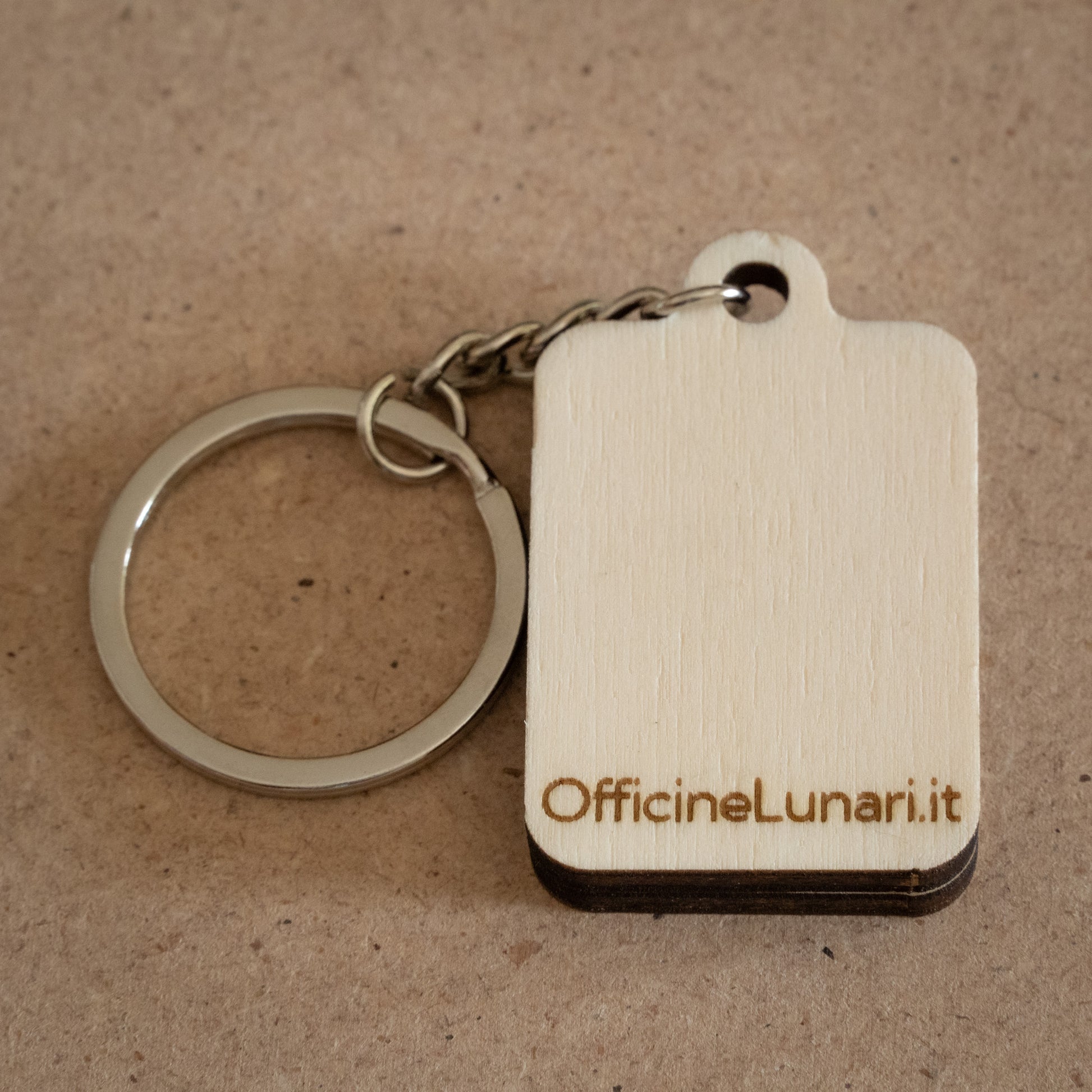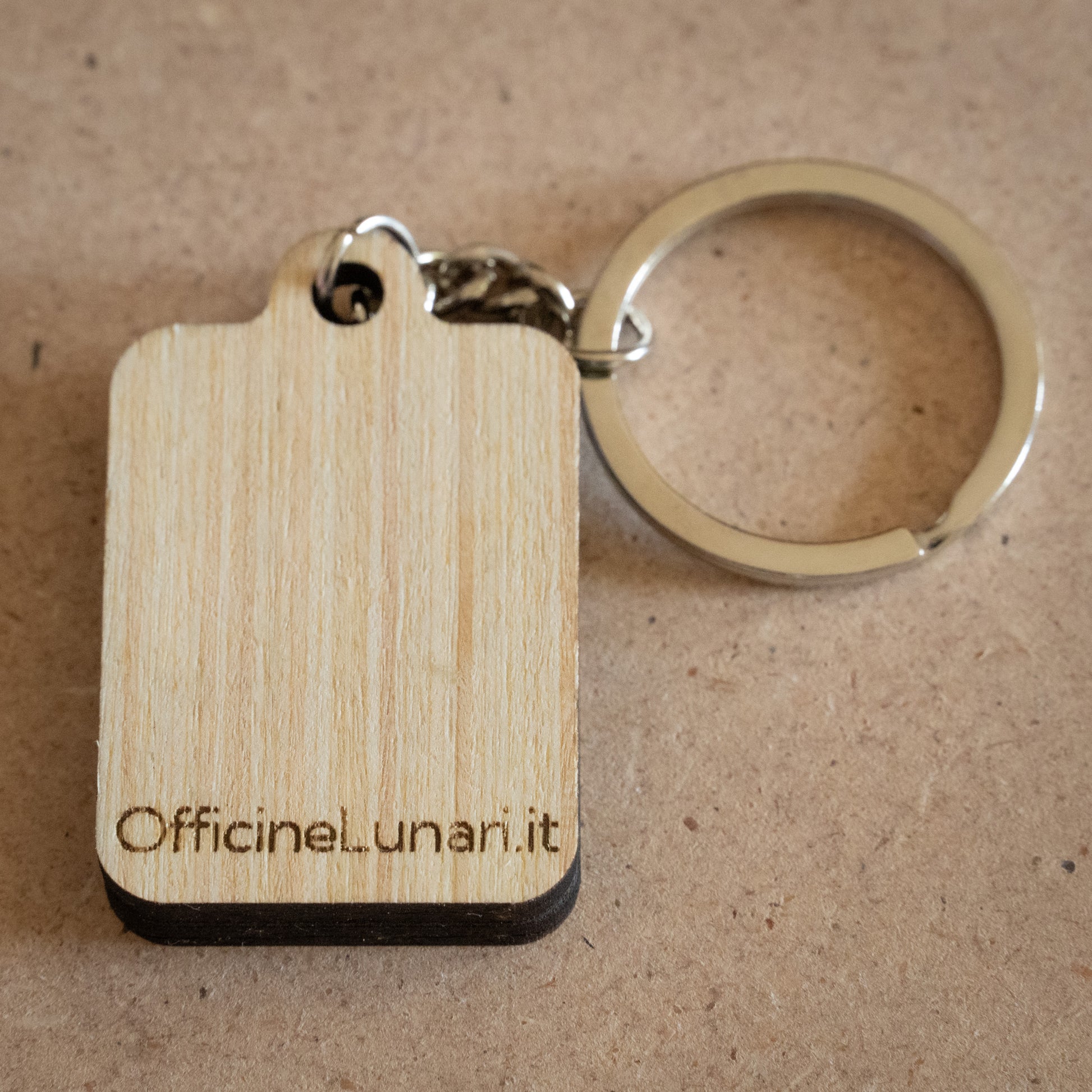 Realizzato con un doppio strato di compensato di pioppo, questo portachiavi unisce la leggerezza del legno alla resistenza di uno spessore da 8 mm. L’incisione laser esalta i dettagli del disegno, rendendo ogni pezzo unico grazie alle venature naturali del legno.